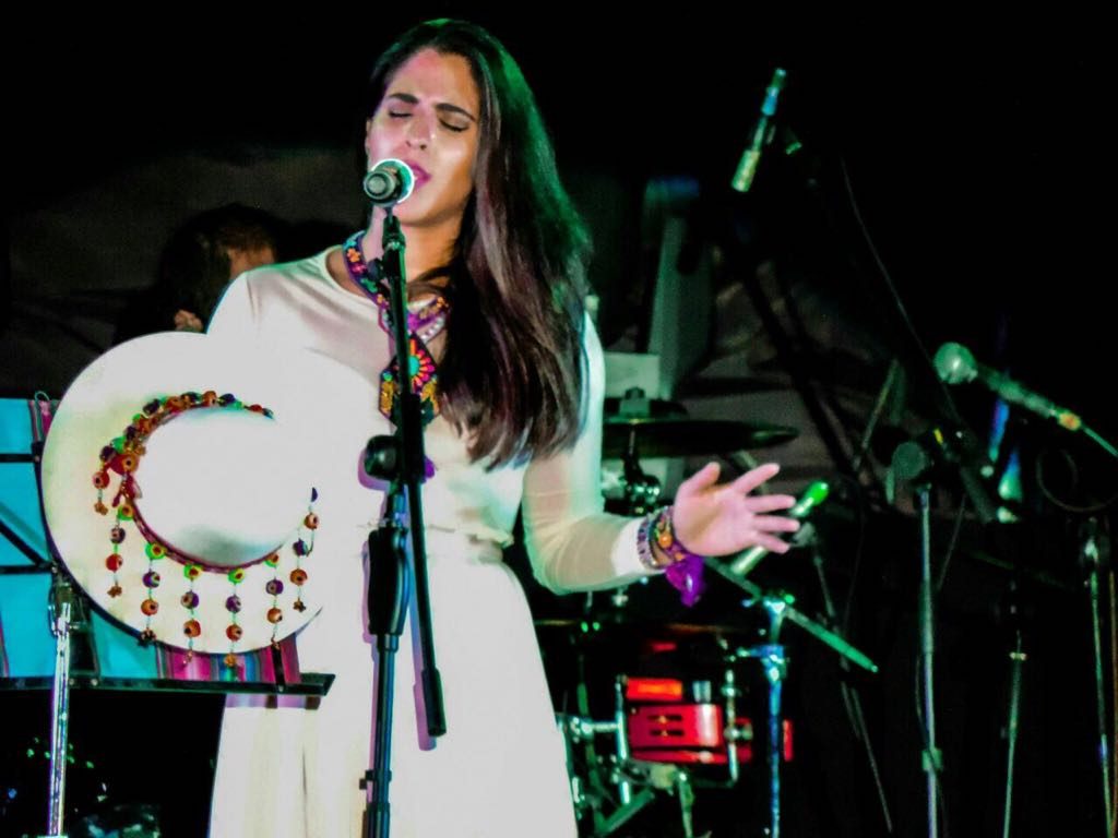 Estef en el escenario, con el sombrero potosino, que es una recreación del que llevó su madre en su boda.“Yo te llevo dentro, hasta la raíz”, es una de las canciones de Natalia Lafourcade que forma parte del repertorio de Estefanía; y es así como lleva a su madre en su día a día. Siempre presente.