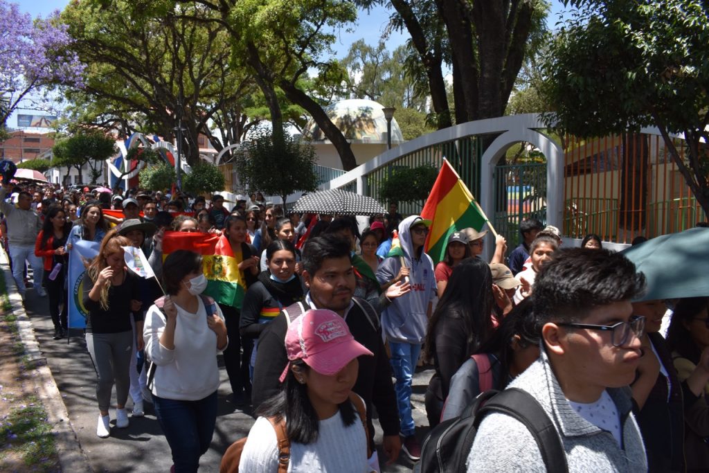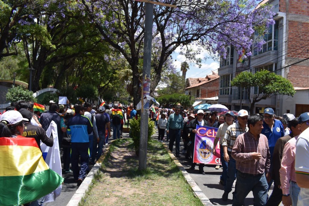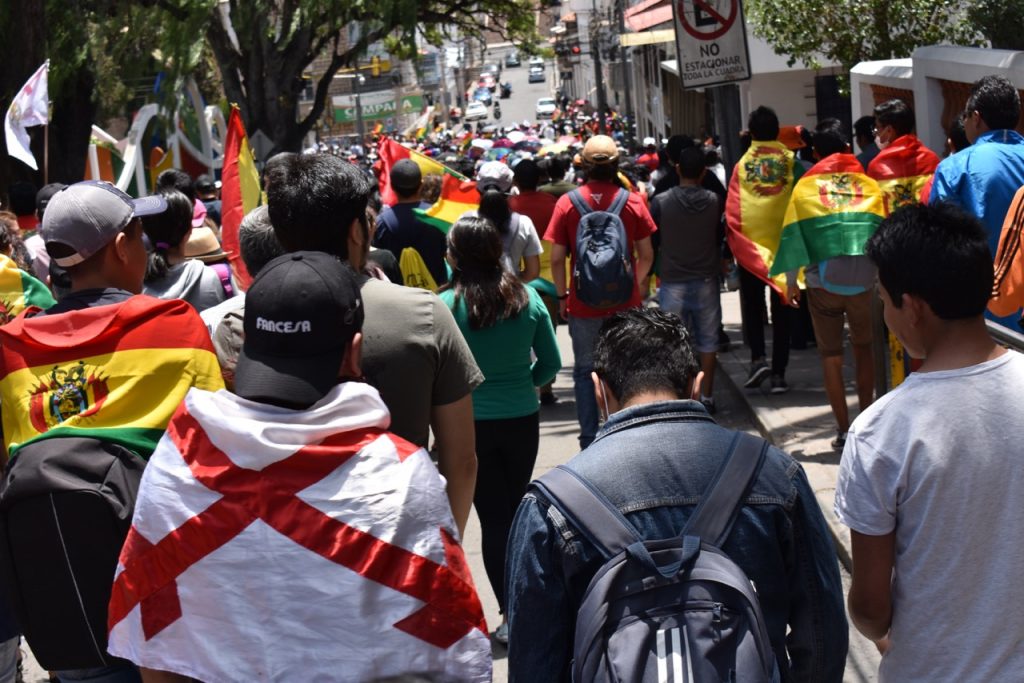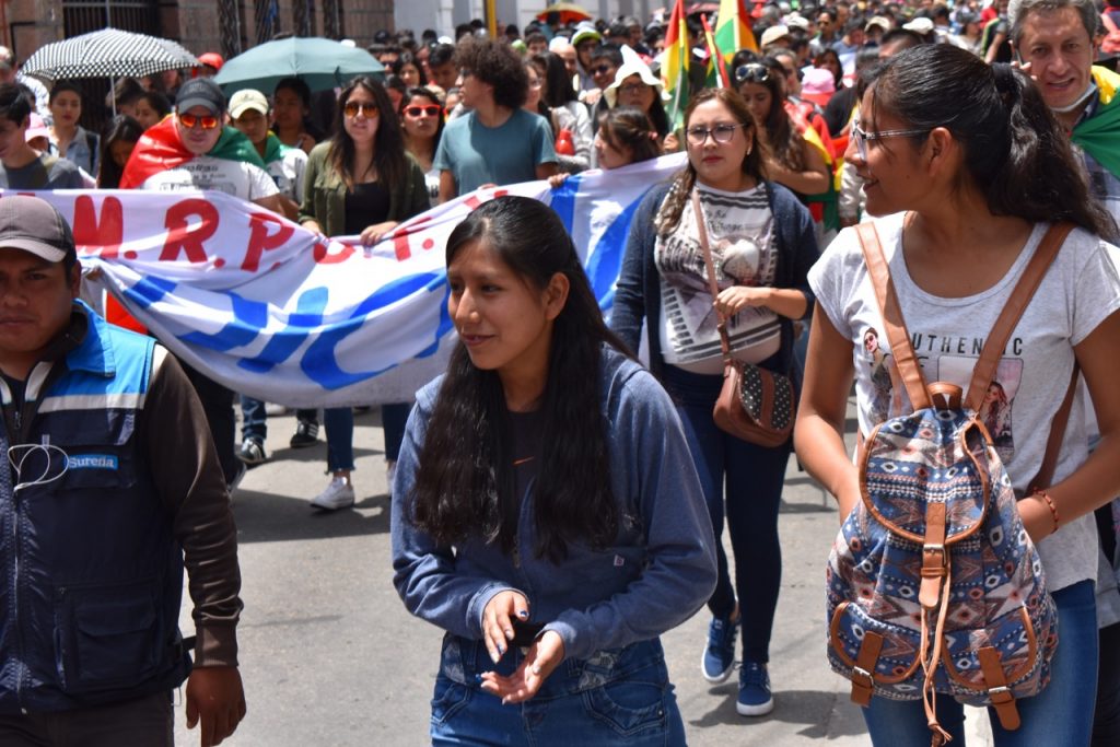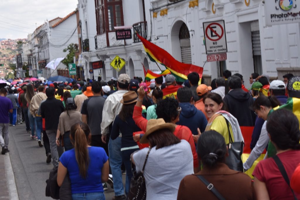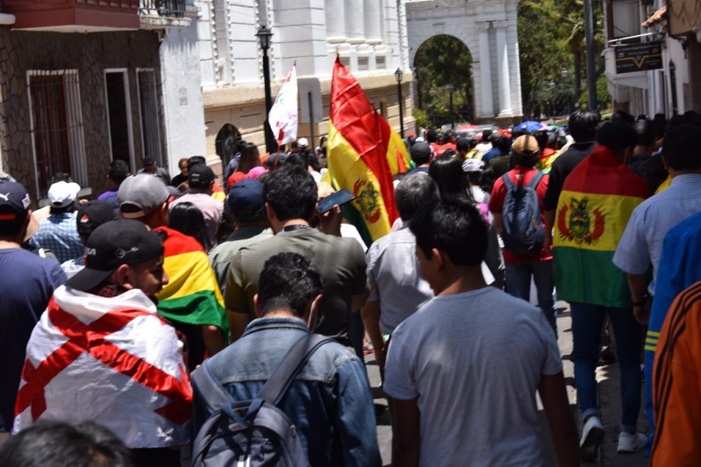 Minutos antes del medio día, la marcha protagonizada por varios miles de ciudadanos, llega a la plaza 25 de mayo de la ciudad de Sucre exigiendo respeto al voto. La marcha tiene una longitud de aproximadamente 15 cuadras y tiene como protagonistas a lo jóvenes y a diferentes organizaciones de la sociedad. Te mostramos cómo se vivió esta segunda jornada de paro en la Capital, en nuestra Galería de imágenes.