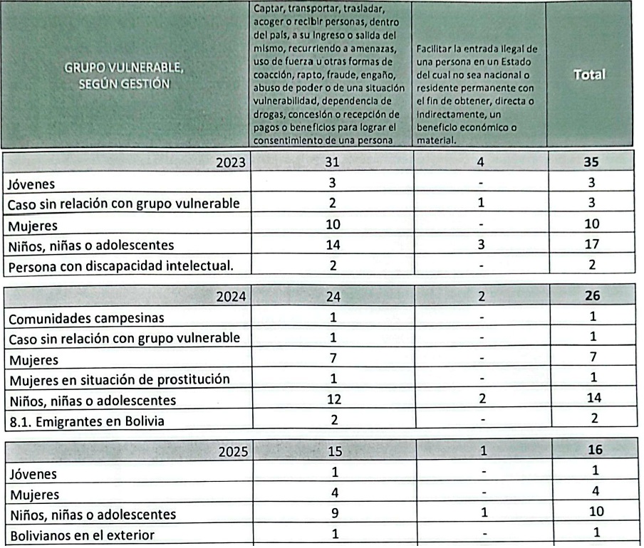 Esa reacción revela una problemática que sigue sin resolverse en Bolivia: la falta de una normativa clara para diferenciar los casos de personas desaparecidas. No todas las desapariciones están vinculadas a trata; algunas encubren otros delitos, como feminicidios. Sin embargo, hoy se tratan con los mismos recursos y respuestas mecánicas.