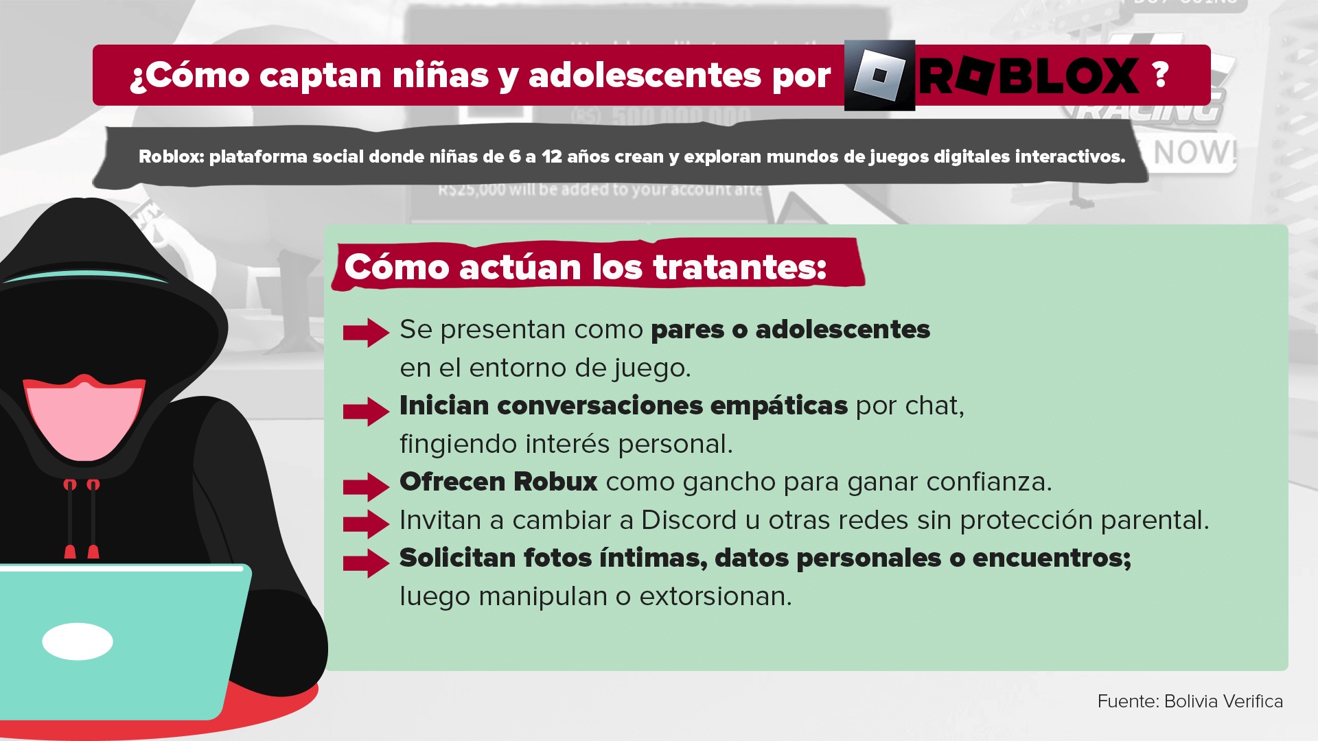 Y el problema no es exclusivo de Bolivia. En países como Estados Unidos ya se han reportado casos de trata y pornografía de niños que comenzaron con una simple conversación en Roblox, según informaron medios e instituciones internacionales como The Guardian, Fundación 5 Rights, NBC News, BBC Mundo y El País de España.