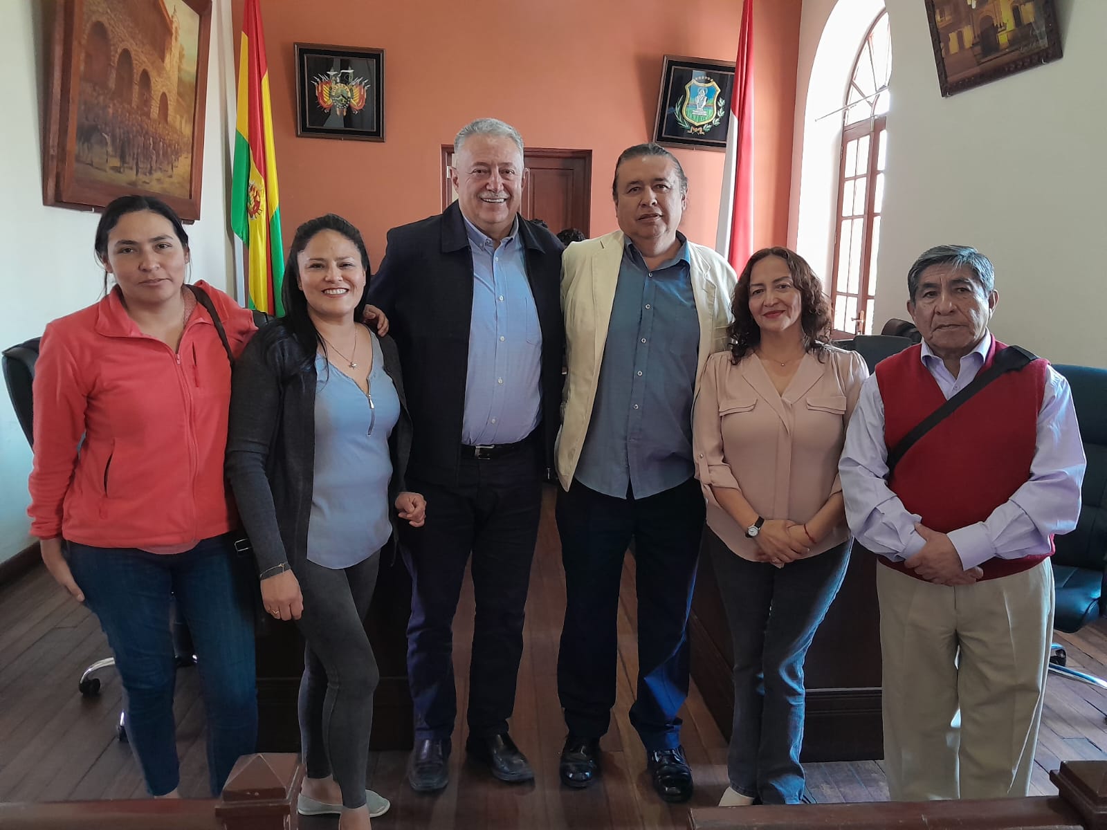 El presidente de la APT junto a los concejales tras la aprobación de la norma que permite la designación de un tribunal de imprenta en Tarija.