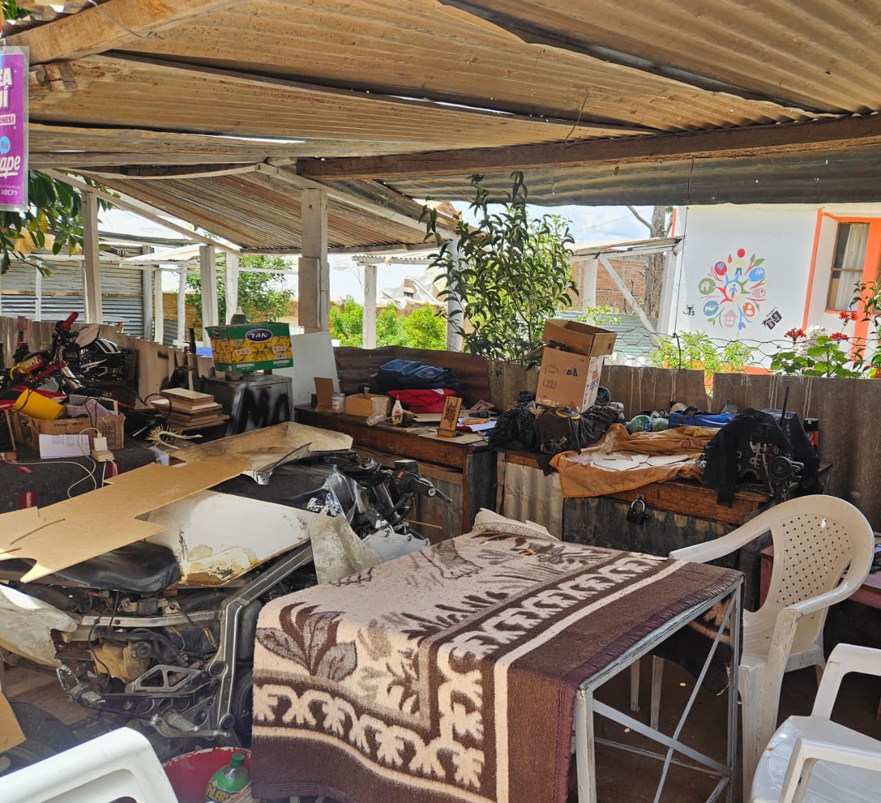 “Trato de ayudar. Los compañeros preguntan: ‘¿Esto cómo se hace?’ o ‘¿Cómo se llama?’ y les ayudo, pues”, dice con orgullo por compartir lo que sabe. Cuando ingresó no existía un taller de motos como tal en el centro, pero ahora tienen un letrero en la puerta que invita a posibles clientes.