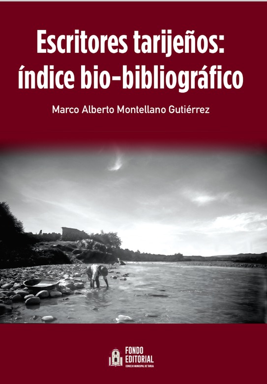 Ensayo: Escritores tarijeños: índice bio-bibliográfico es el trabajo que presenta Marco Montellano Gutiérrez con el Fondo Editorial del Concejo Municipal de Tarija.